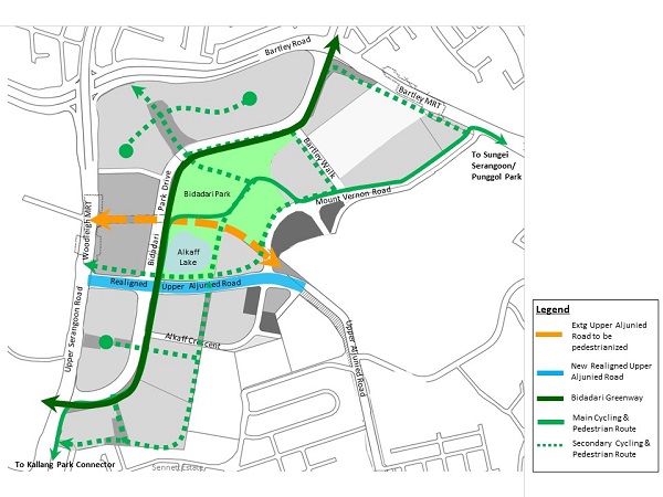 The junction at Upper Serangoon Road and Upper Aljunied Road will be removed. Barricades and diversion signs will be put up to guide motorists. A new realigned Upper Aljunied Road will open to traffic from the same day with an additional lane in each direction where motorists can expect smoother traffic on the new road.